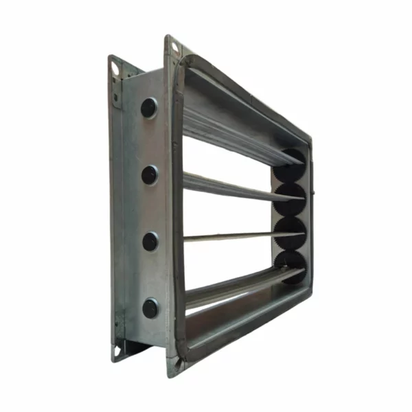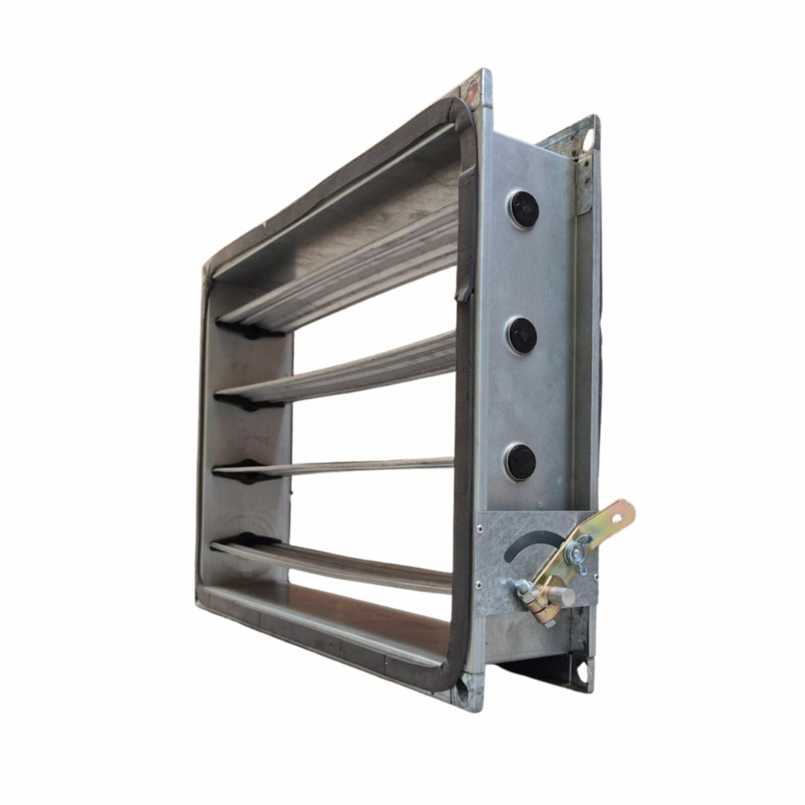 – Instalado diretamente na linha do duto (condutas retangulares ou quadradas) onde se deseja regular o fluxo de ar de forma pontual ou setorial.