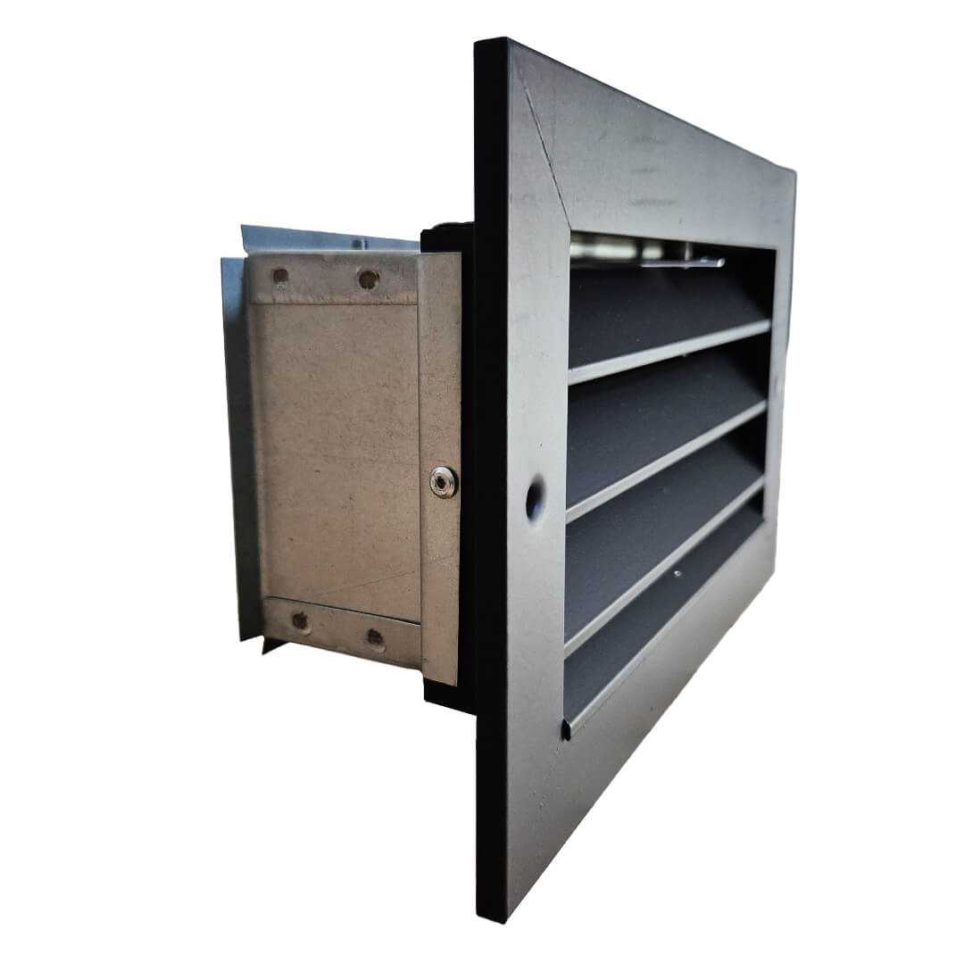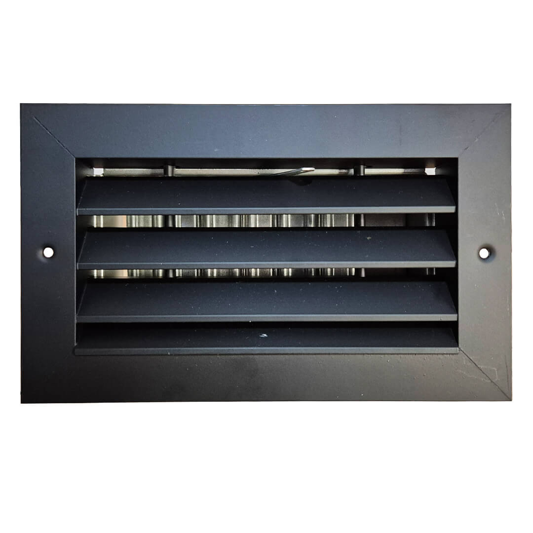 FHO (RFH + NO + OB): Grelha com lâminas horizontais fixas a 45°, equipada com registro.