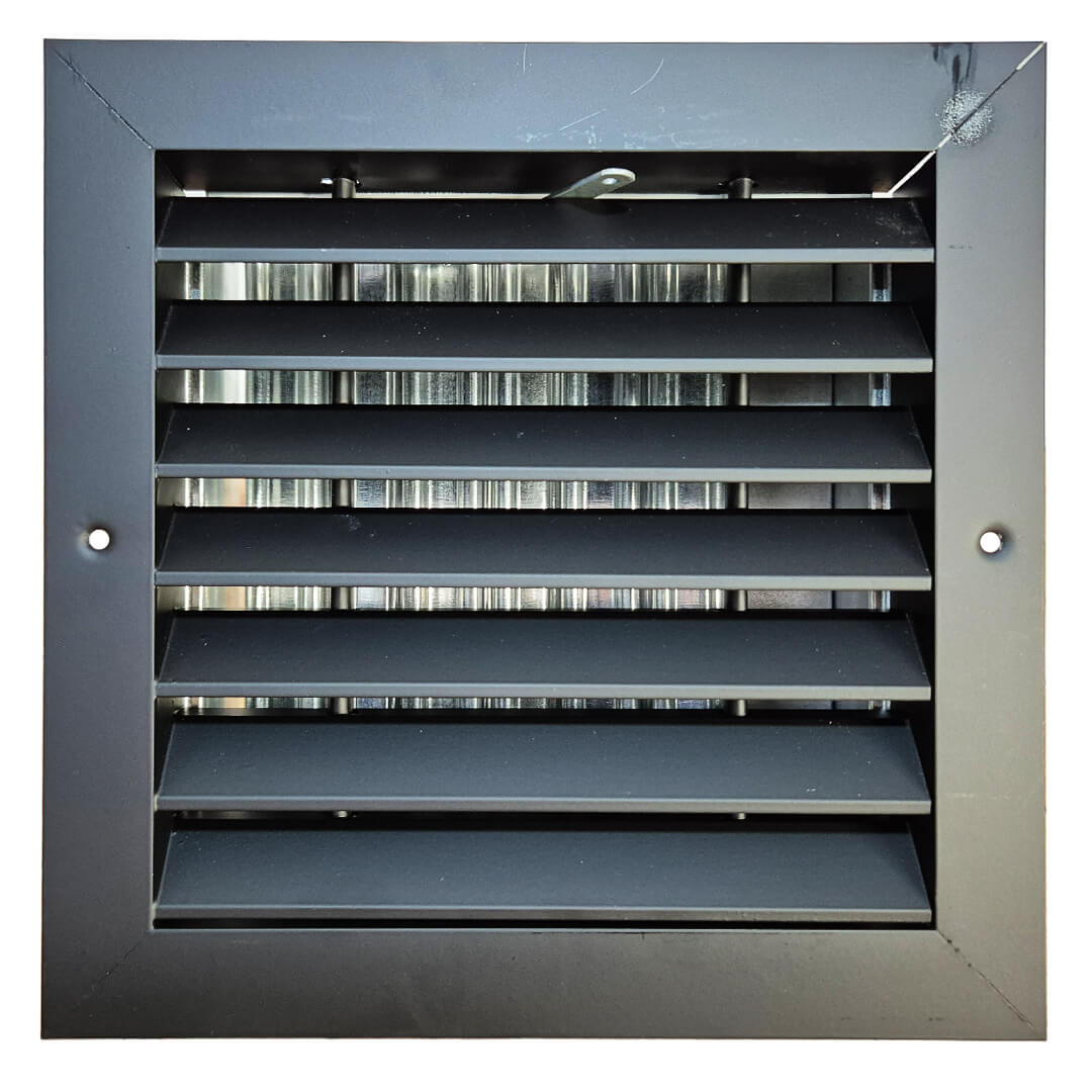 FHO (RFH + NO + OB): Grelha com lâminas horizontais fixas a 45°, equipada com registro.