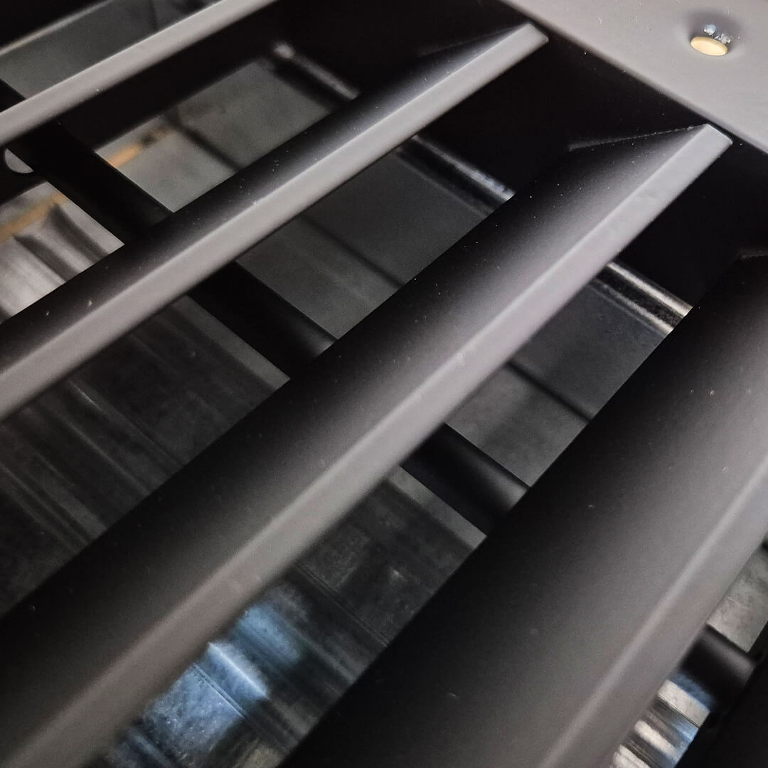 RFH: Grelha com lâminas horizontais fixas a 45°, com espaçamento de 28 mm.